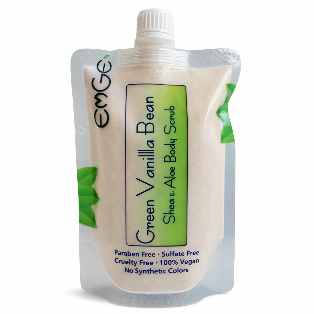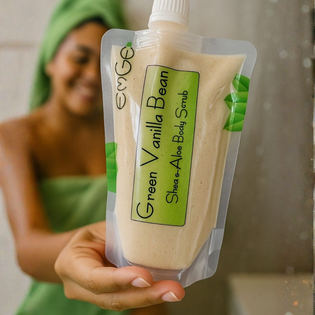 This small-batch scrub blends 97% natural ingredients with real vanilla bean extract, giving it a soft, creamy sweetness with subtle green pod undertones — like fresh vanilla still in its shell. The gentle exfoliation removes dry, dull skin, while nourishing oils leave your body silky, not stripped.
